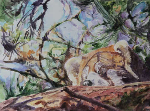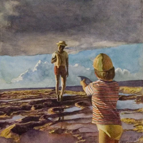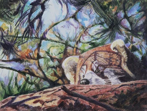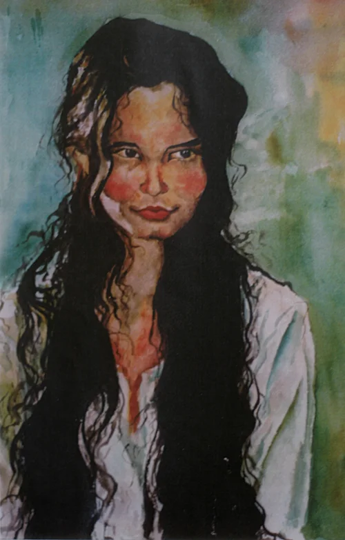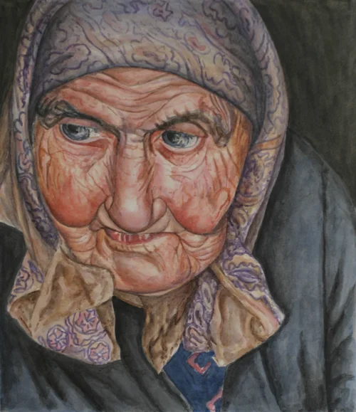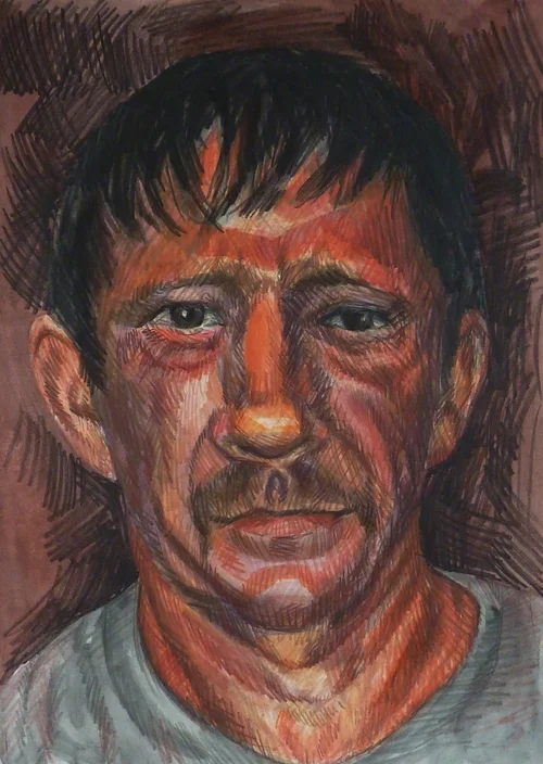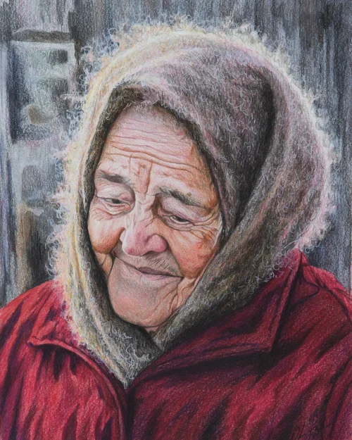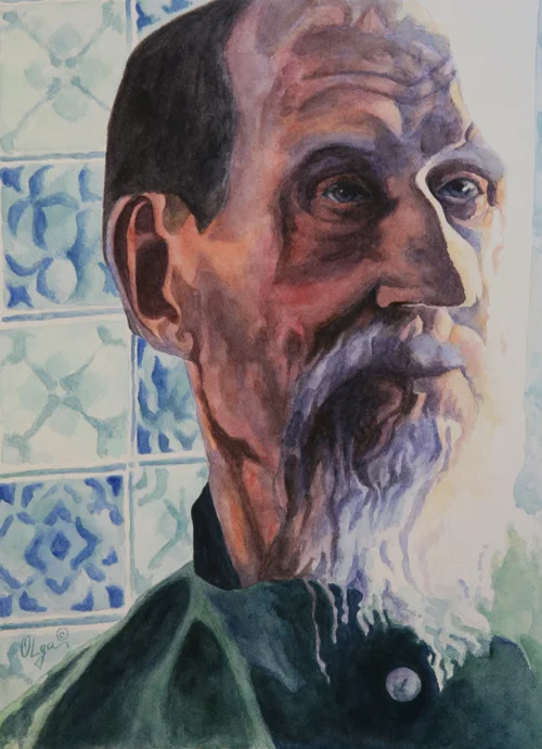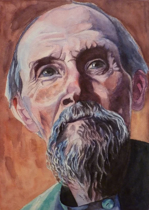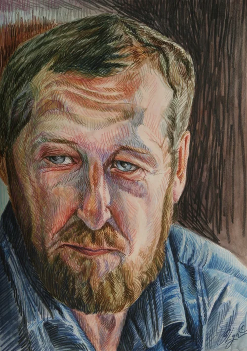 I developed the technique of working color pencils over watercolors (Family Friend, Uncle) while creating illustrations for children's books. On hot pressed watercolor paper with smooth surface the pencil gives the watercolor a kick and a definition of color. Working beyond illustrations I found that pencil lines can be incredibly expressive, moreover, I can construct an entire piece with lines but without ever employing contour. This approach reminds me very much of Vincent Van Gogh's paintings with their expressive brushwork and his drawings, with lines full of movement and purposeful direction.