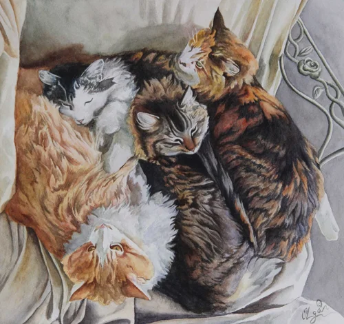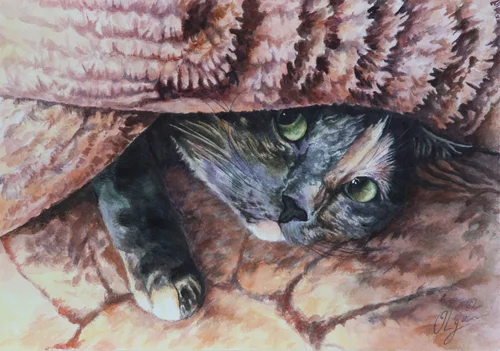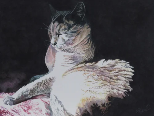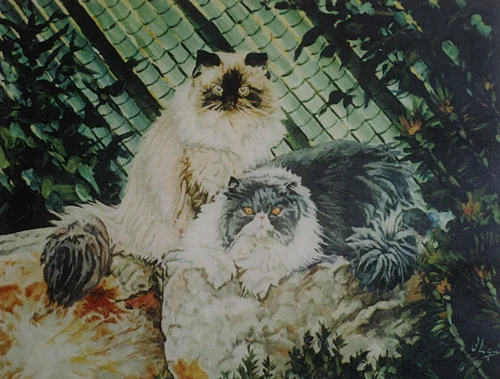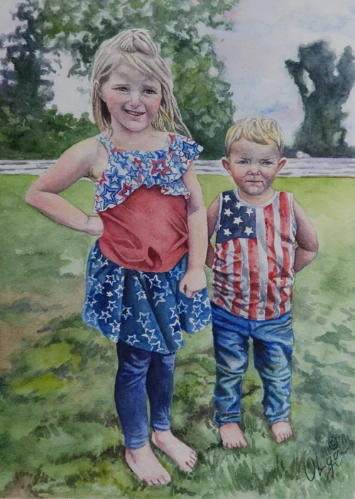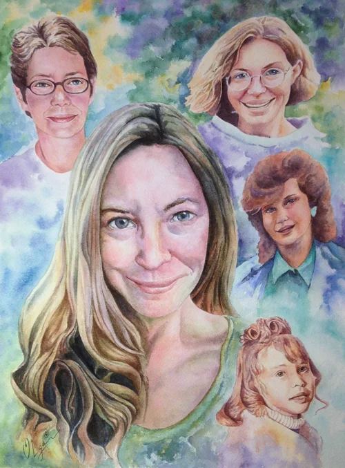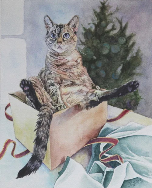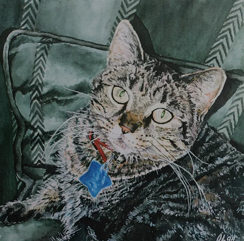 Portraits are done from your photographs in a medium (oils, acrylics, watercolors, pencils) on a surface (canvas, paper, board) of your choosing. Prices depend on size, medium, and number of pets/people in the painting.