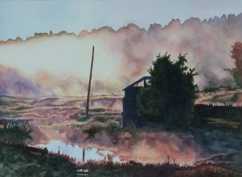 Images of fog particularly draw me in lately, perhaps because I'm in a place in my life now where the future is unclear. Multiple possibilities are hidden behind the ever shifting veil of uncertainty and I can't see. I feel like I have to fumble blindly my way through to get to the other side. At the same time, my past is slowly fading from me, getting lost in the day-to-day life of 'right here and now.' It is all I can do to hold on to my precious memories is to paint them.