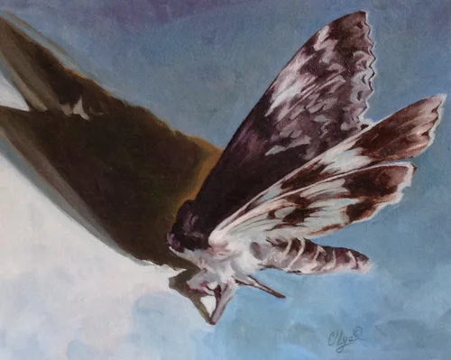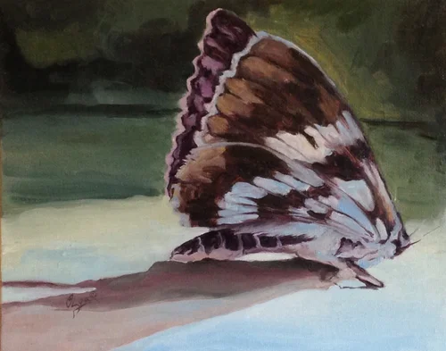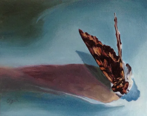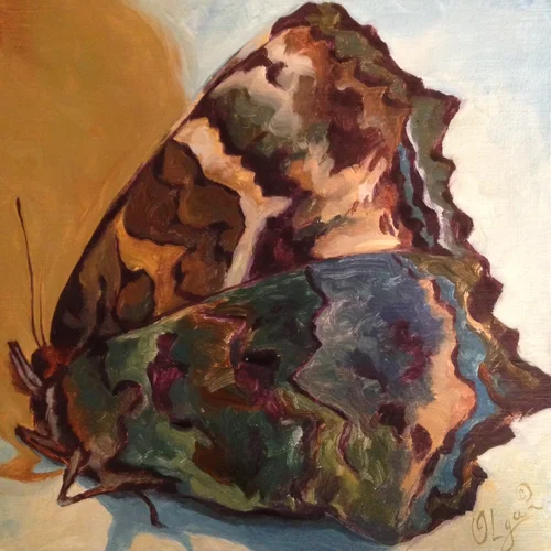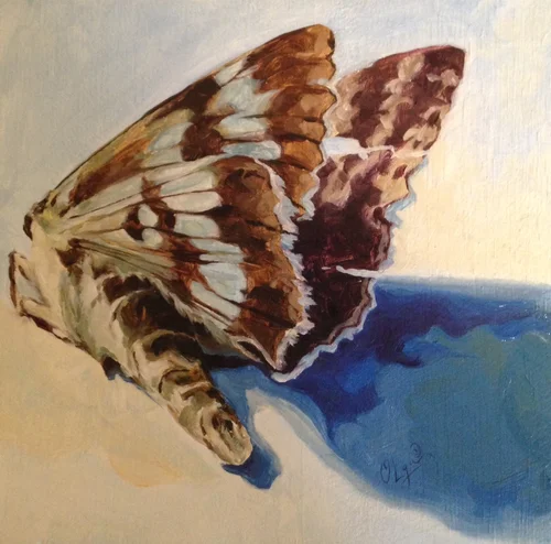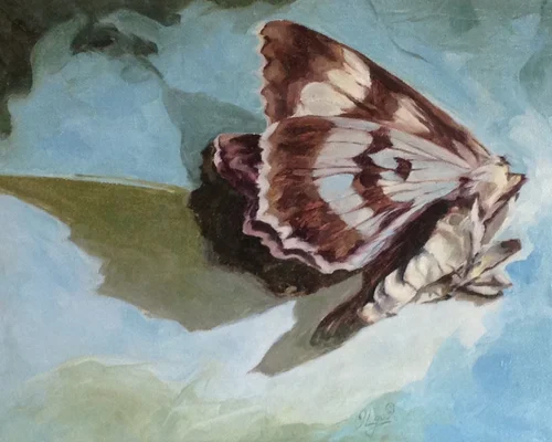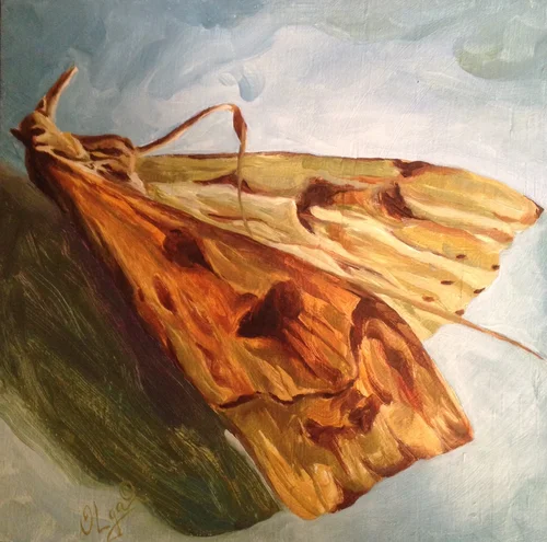 It started with a perfectly intact husk of a dead insect I found. I've trained my artistic eye to see beauty in everything. Very soon I had gathered a collection. These fragile remnants call for expressive brushstrokes that can capture the shimmering of light and wings, giving them a new life.
